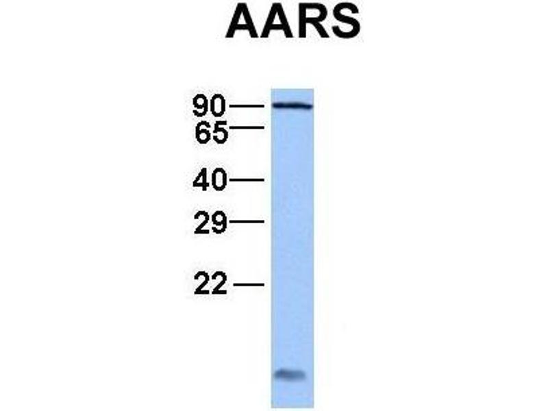 The human alanyl-tRNA synthetase (AARS) belongs to a family of tRNA synthases, of the class II enzymes. Class II tRNA synthases evolved early in evolution and are highly conserved. This is reflected by the fact that 498 of the 968-residue polypeptide human AARS shares 41% identity witht the E.coli protein. tRNA synthases are the enzymes that interpret the RNA code and attach specific aminoacids to the tRNAs that contain the cognate trinucleotide anticodons. They consist of a catalytic domain which interacts with the amino acid acceptor-T psi C helix of the tRNA, and a second domain which interacts with the rest of the tRNA structure. [provided by RefSeq, Jul 2008].