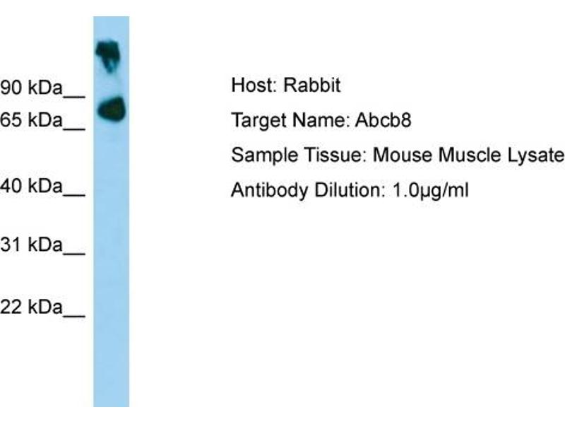 ATP binding cassette subfamily B member 8 (ABCB8) 抗体 ATP-binding cassette, sub-family B (MDR/TAP), member 8 (Abcb8) 抗体 ATP binding cassette subfamily B member 8 (Abcb8) 抗体 ATP-binding cassette, sub-family B (MDR/TAP), member 8 (abcb8) 抗体 ATP binding cassette subfamily B member 8 (abcb8) 抗体 4833412N02Rik 抗体 AA409895 抗体 ABCB8 抗体 EST328128 抗体 M-ABC1 抗体 MABC1 抗体 zgc:113037 抗体