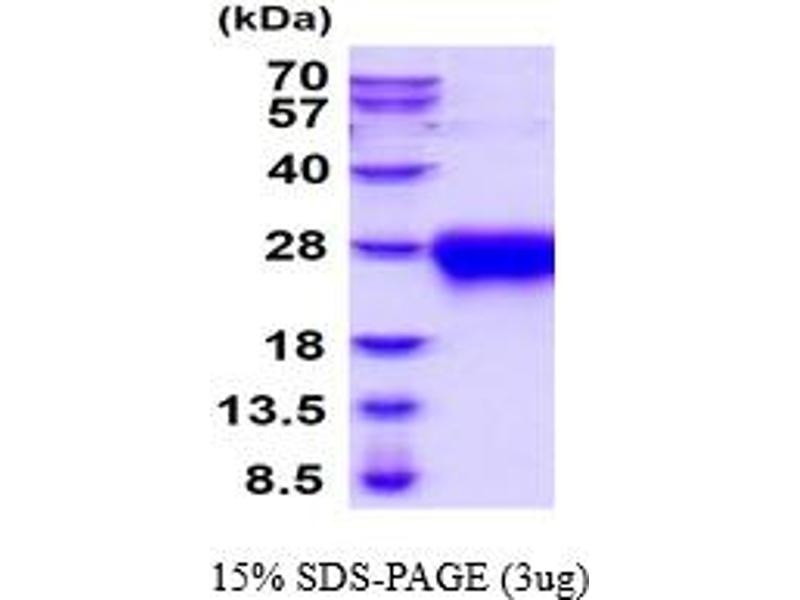 The purity of the protein is greater than 85 % as determined by SDS-PAGE and Coomassie blue staining.