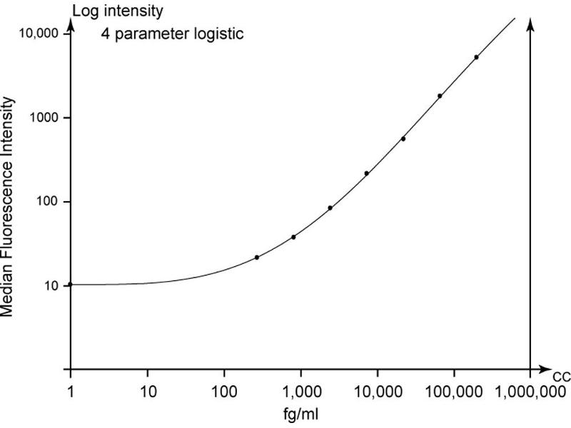 This BD CBA Enhanced Sensitivity Flex Set contains one vial each of Enhanced Sensitivity Capture Bead and Detection Reagent (Part A) and two vials of Standard. The Enhanced Sensitivity Detection Reagent (Part B) is provided in the BD CBA Human Enhanced Sensitivity Master Buffer Kit. The Enhanced Sensitivity Capture Bead and Detection Reagent (Part A) components of this flex set have been formulated to a 20xconcentration to ensure product performance when multiplexed. The Standard component is lyophilized and when reconstituted according to the instructions in the BD CBA Human Enhanced Sensitivity Master Buffer kit, the top standard point for this assay is 200,000 fg/ml. Discard unused reconstituted standard, do not store or reuse. Store lyophilized standard and other components at 4°C. -