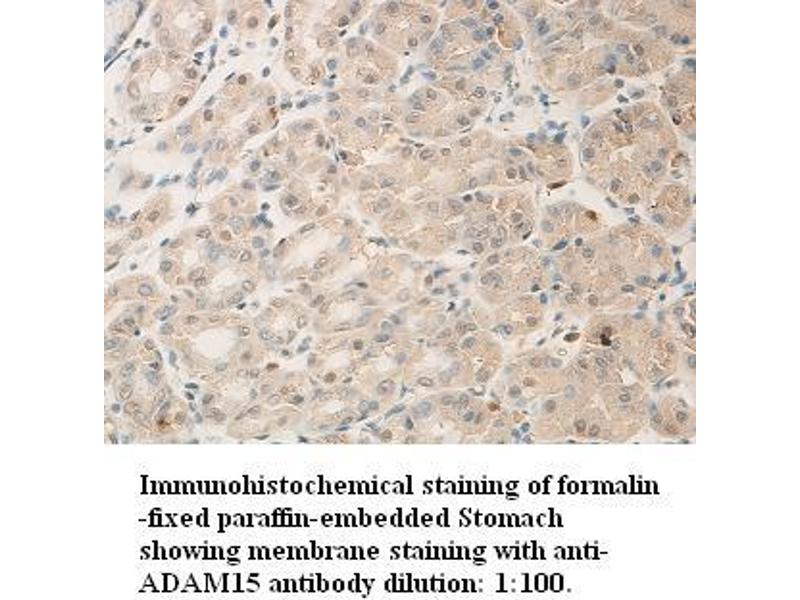 The protein encoded by this gene is a member of the ADAM (a disintegrin and metalloproteinase) protein family. ADAM family members are type I transmembrane glycoproteins known to be involved in cell adhesion and proteolytic ectodomain processing of cytokines and adhesion molecules. This protein contains multiple functional domains including a zinc-binding metalloprotease domain, a disintegrin-like domain, as well as a EGF-like domain. Through its disintegrin-like domain, this protein specifically interacts with the integrin beta chain, beta 3. It also interacts with Src family protein-tyrosine kinases in a phosphorylation-dependent manner, suggesting that this protein may function in cell-cell adhesion as well as in cellular signaling. Multiple alternatively spliced transcript variants encoding distinct isoforms have been observed. [provided by RefSeq, Jul 2008].