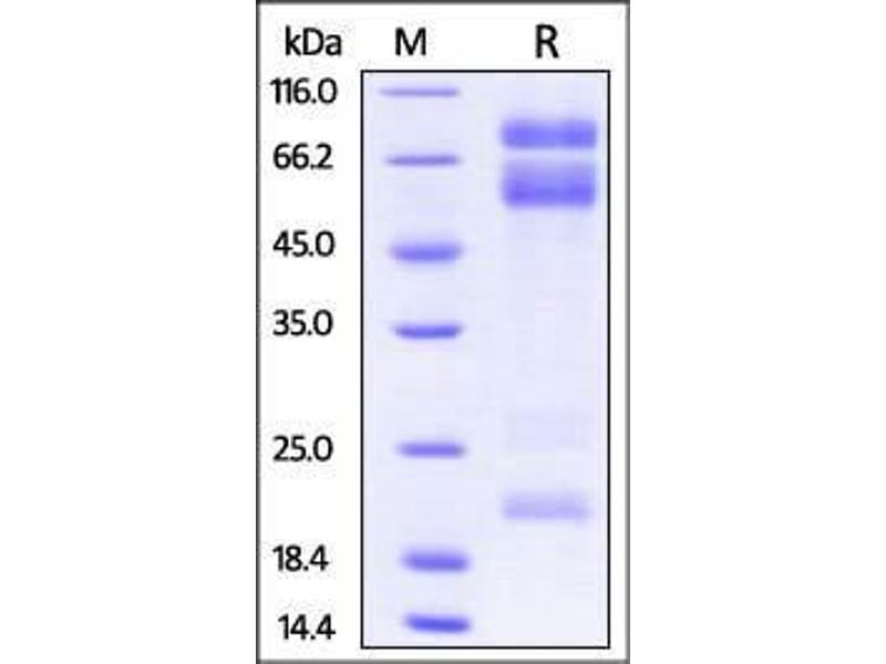 The purity of the protein is greater than 95 % as determined by SDS-PAGE and Coomassie blue staining.
