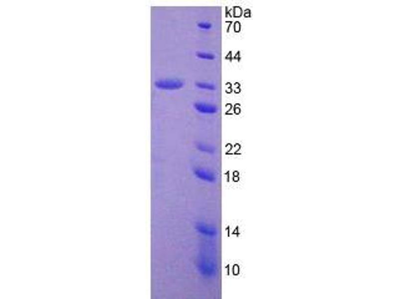 The purity of the protein is greater than 95 % as determined by SDS-PAGE and Coomassie blue staining.