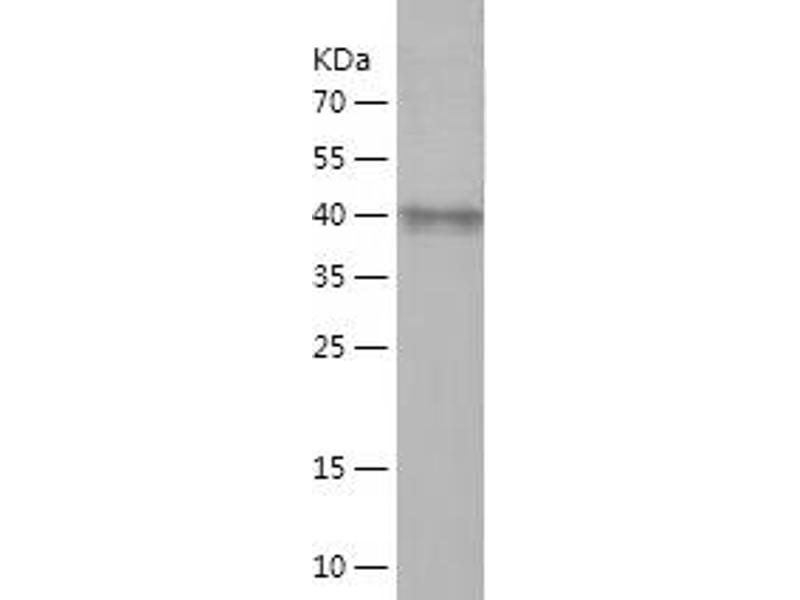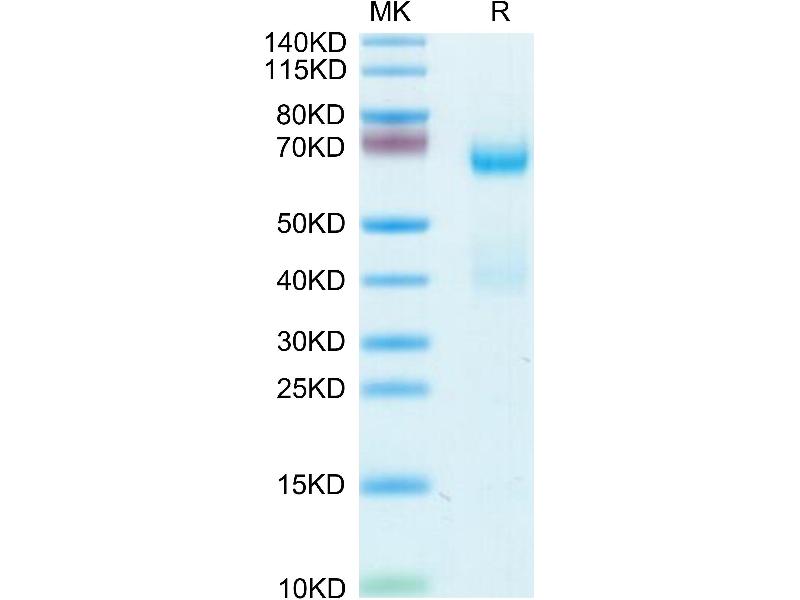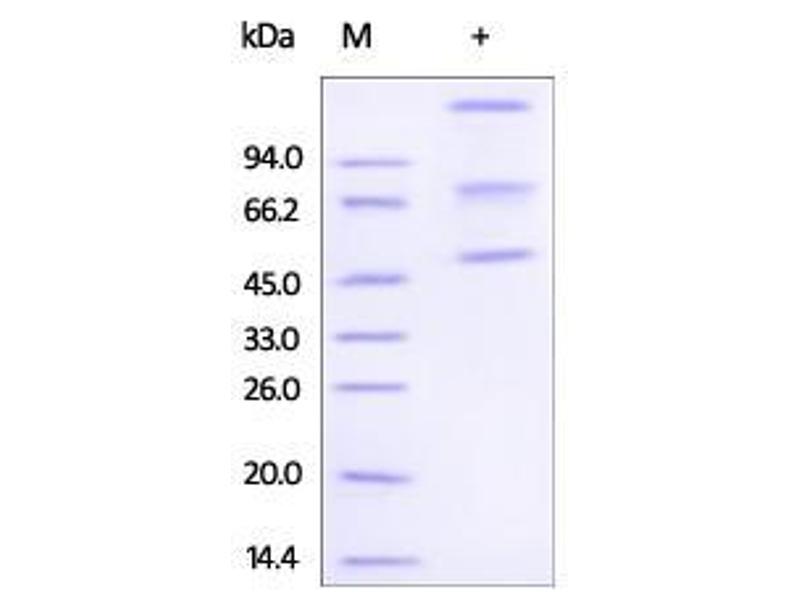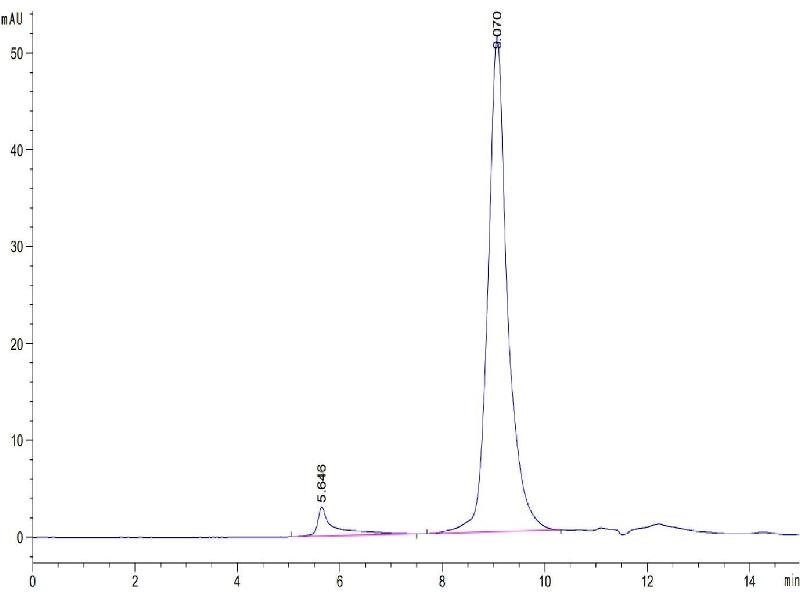 The purity of the protein is greater than 85 % as determined by SDS-PAGE and Coomassie blue staining.