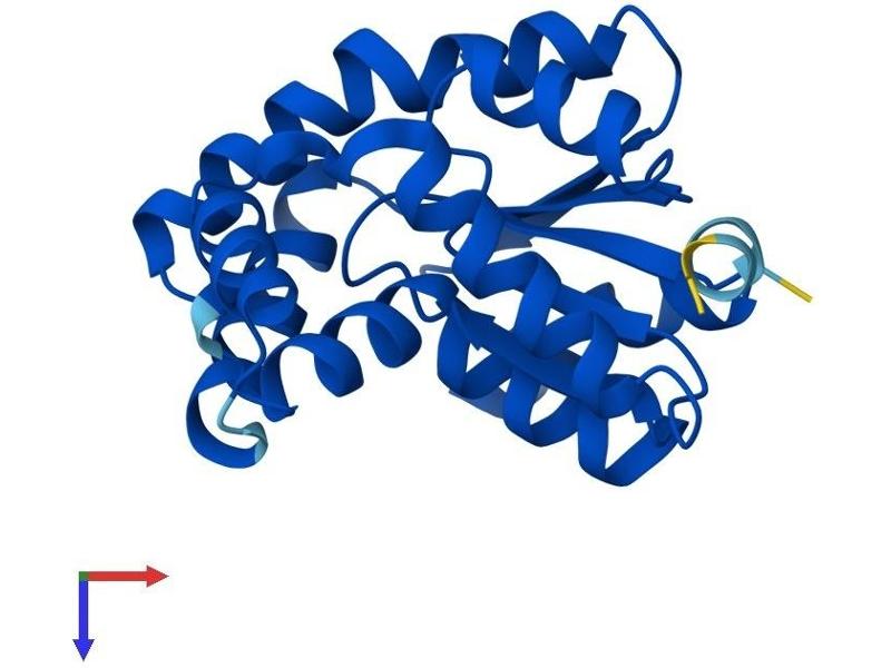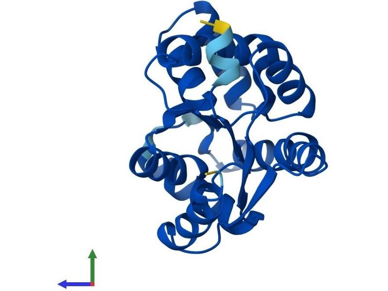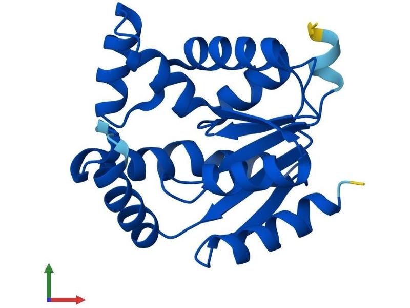 Adenylate kinase is an enzyme involved in regulating the adenine nucleotide composition within a cell by catalyzing the reversible transfer of phosphate group among adinine nucleotides. Three isozymes of adenylate kinase have been identified in vertebrates, adenylate isozyme 1 (AK1), 2 (AK2) and 3 (AK3). AK1 is found in the cytosol of skeletal muscle, brain and erythrocytes, whereas AK2 and AK3 are found in the mitochondria of other tissues including liver and heart. AK1 was identified because of its association with a rare genetic disorder causing nonspherocytic hemolytic anemia where a mutation in the AK1 gene was found to reduce the catalytic activity of the enzyme. [provided by RefSeq, Jul 2008].