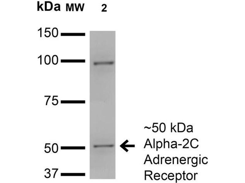 Alpha-2-adrenergic receptors are members of the G protein-coupled receptor superfamily. They include 3 highly homologous subtypes: alpha2A, alpha2B, and alpha2C. These receptors have a critical role in regulating neurotransmitter release from sympathetic nerves and from adrenergic neurons in the central nervous system. The mouse studies revealed that both the alpha2A and alpha2C subtypes were required for normal presynaptic control of transmitter release from sympathetic nerves in the heart and from central noradrenergic neurons. The alpha2A subtype inhibited transmitter release at high stimulation frequencies, whereas the alpha2C subtype modulated neurotransmission at lower levels of nerve activity. This gene encodes the alpha2C subtype, which contains no introns in either its coding or untranslated sequences. [provided by RefSeq, Jul 2008].