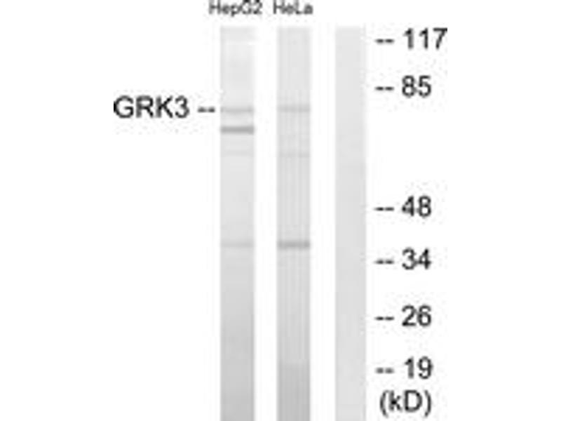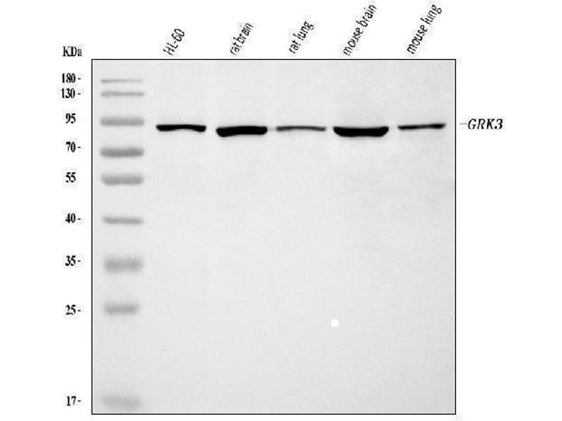 The beta-adrenergic receptor kinase specifically phosphorylates the agonist-occupied form of the beta-adrenergic and related G protein-coupled receptors. Overall, the beta adrenergic receptor kinase 2 has 85% amino acid similarity with beta adrenergic receptor kinase 1, with the protein kinase catalytic domain having 95% similarity. These data suggest the existence of a family of receptor kinases which may serve broadly to regulate receptor function. [provided by RefSeq, Jul 2008].