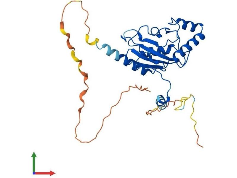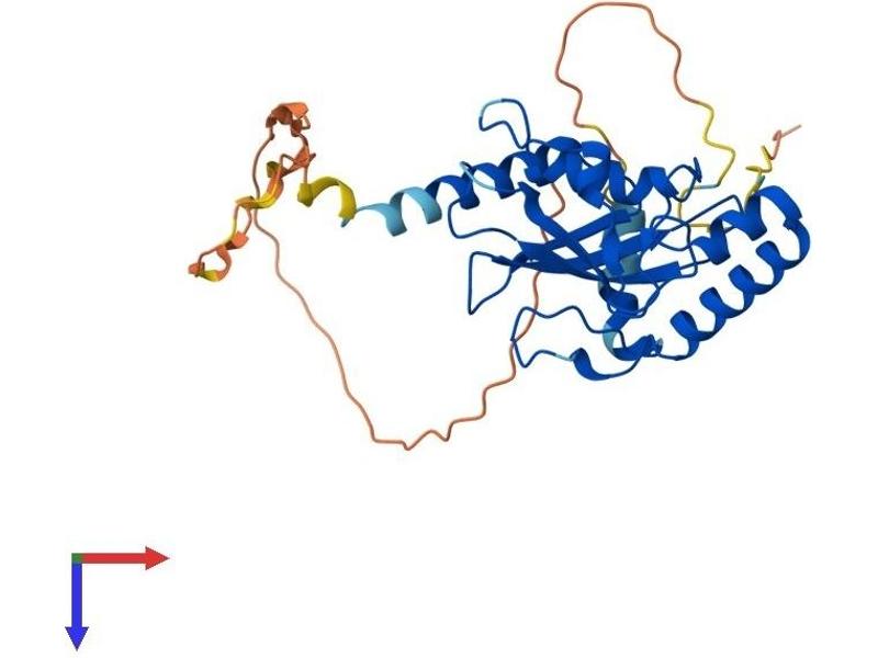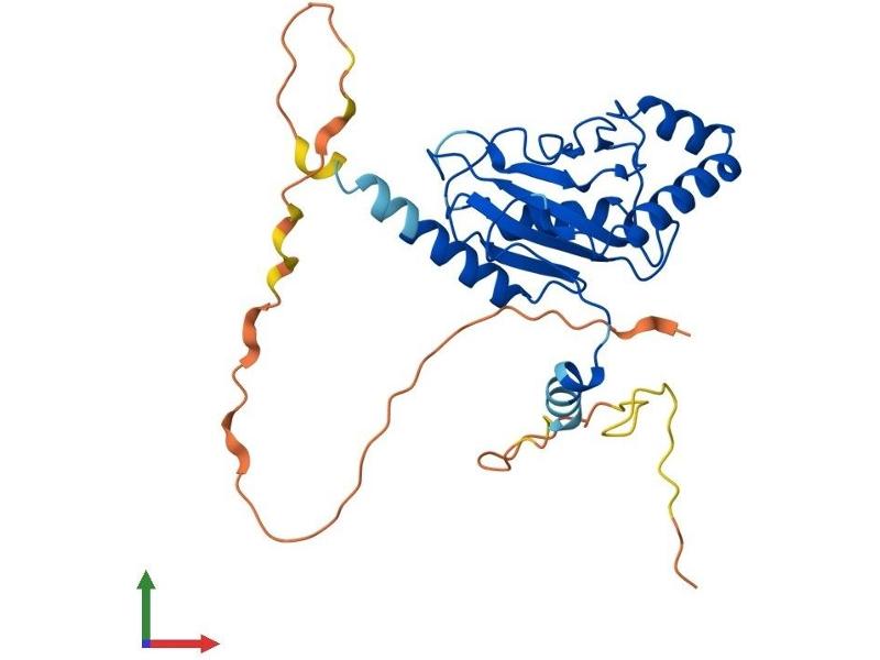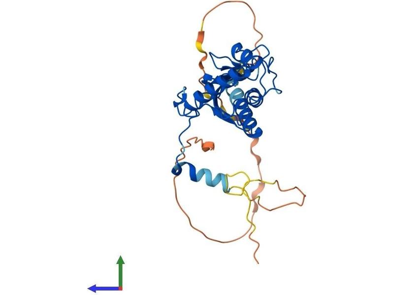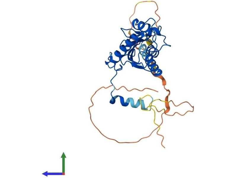 The mouse homolog of this gene produces fused toes and thymic hyperplasia in heterozygous mutant animals while homozygous mutants die in early development. This gene may play a role in apoptosis as these morphological abnormalities are caused by altered patterns of programmed cell death. The protein encoded by this gene is similar to the ubiquitin ligase domain of other ubiquitin-conjugating enzymes but lacks the conserved cysteine residue that enables those enzymes to conjugate ubiquitin to the target protein. This protein interacts directly with serine/threonine kinase protein kinase B (PKB)/Akt and modulates PKB activity by enhancing the phosphorylation of PKB's regulatory sites. Alternative splicing results in two transcript variants encoding the same protein. [provided by RefSeq, Jul 2008].