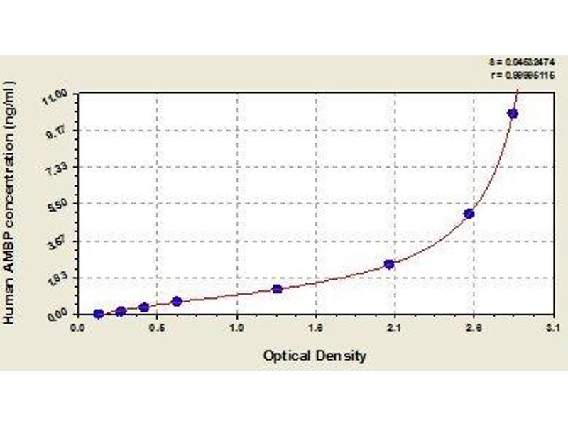 AMBP 适用: 人 Colorimetric Sandwich ELISA 12.5 pg/mL - 800 pg/mL Plasma, Serum, Urine