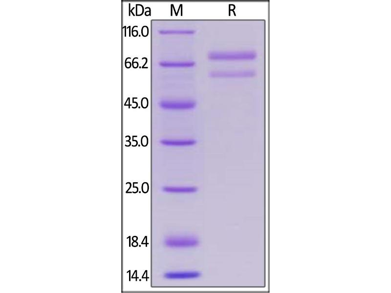 The purity of the protein is greater than 85 % as determined by SDS-PAGE and Coomassie blue staining.