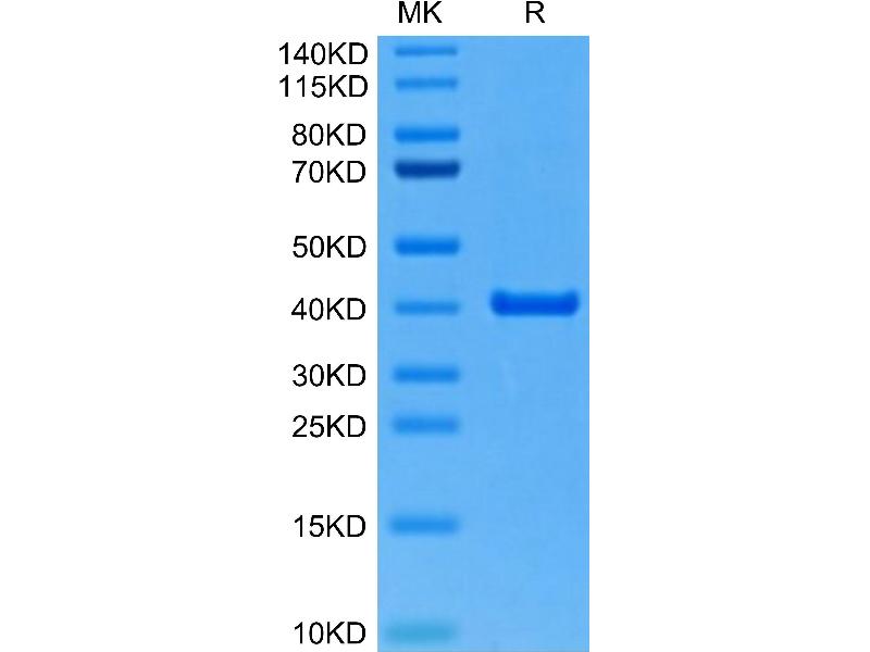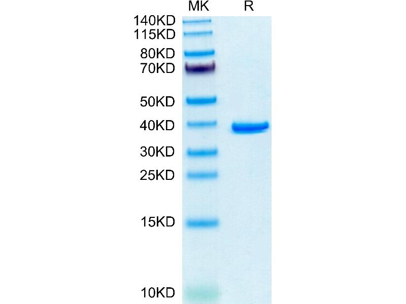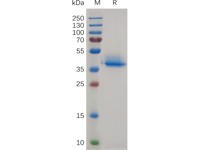 The purity of the protein is greater than 85 % as determined by SDS-PAGE and Coomassie blue staining.