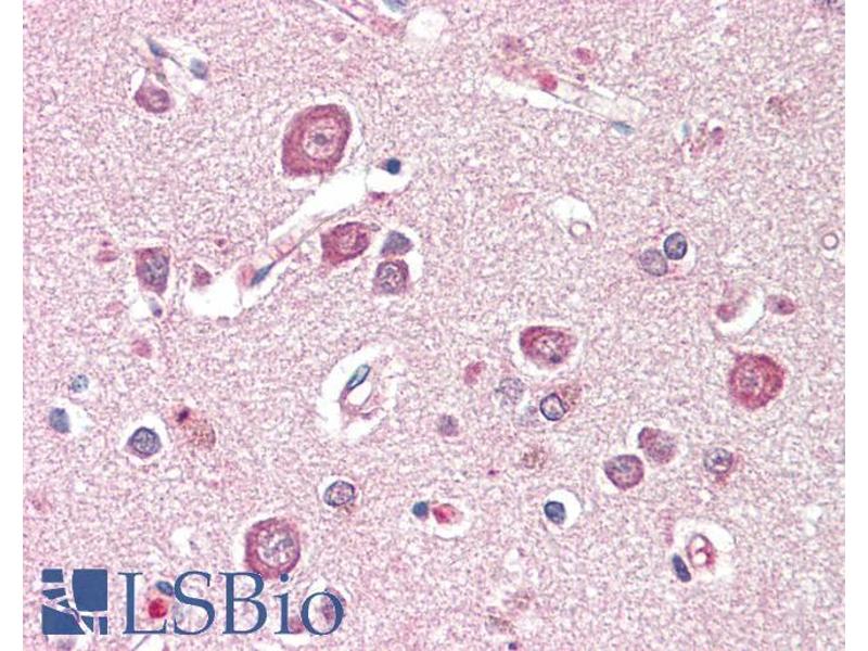 Immunohistochemistry: Paraffin embedded Human Brain (Cortex). Recommended concentration: 5 μg/mL.