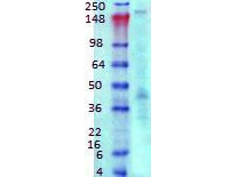 1 μg/ml of ABIN1027718 was sufficient for detection of Ankyrin-G in 20 μg of rat brain membrane lysate and assayed by colorimetric immunoblot analysis using goat anti-mouse IgG:HRP as the secondary antibody.