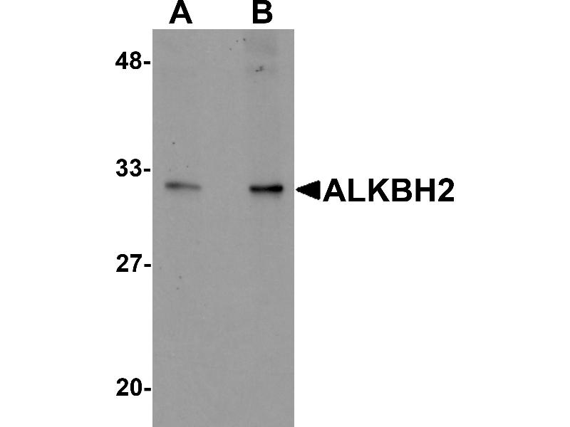 ALKBH2 antibody can be used for detection of ALKBH2 by Western blot at 1 - 2 μg/mL.