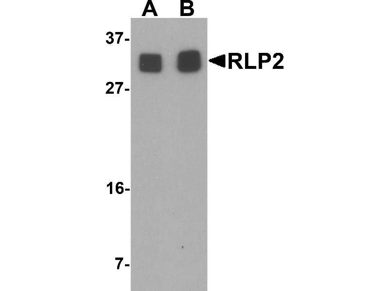 RLP2 antibody can be used for detection of RLP2 by Western blot at 1 - 2 μg/mL.