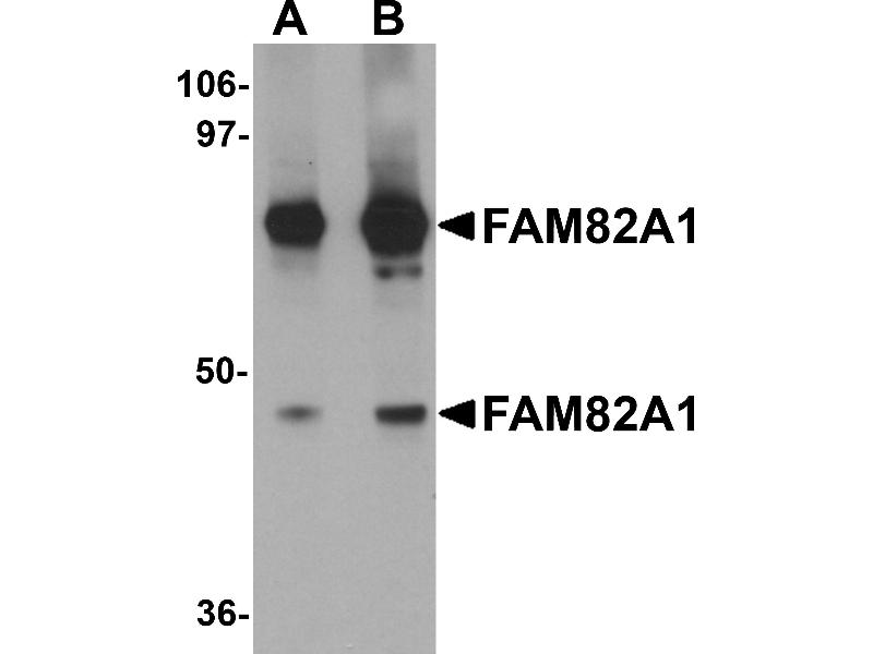 - FAM82A1 antibody can be used for detection of FAM82A1 by Western blot at 1 - 2 μg/mL.
