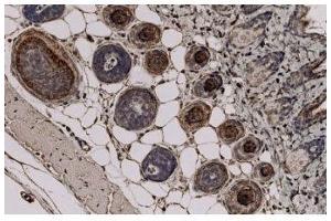 - This antibody recognises a 220K trichohyalin granular protein, a marker for hair follicular differentiation
