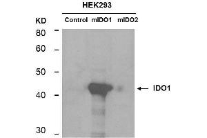 Immunogen: IDO1 antibody was produced in mouse by repeated immunizations with mouse recombinant IDO1 protein followed by hybridoma development.