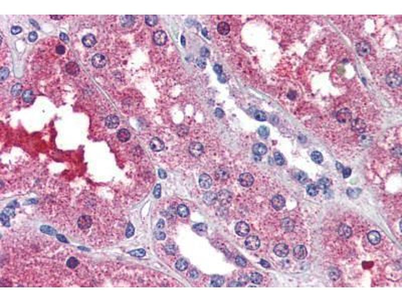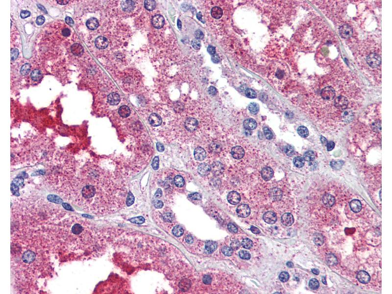 Usage: Immunohistochemistry: This antibody was validated for use in immunohistochemistry on a panel of 21 formalin-fixed, paraffin-embedded (FFPE) human tissues after proteinase K antigen retrieval. After incubation with the primary antibody, slides were incubated with biotinylated secondary antibody, followed by alkaline phosphatase-streptavidin and chromogen. The stained slides were evaluated by a pathologist to confirm staining specificity. The optimal working concentration for this antibody was determined to be 5 μg/mL. -