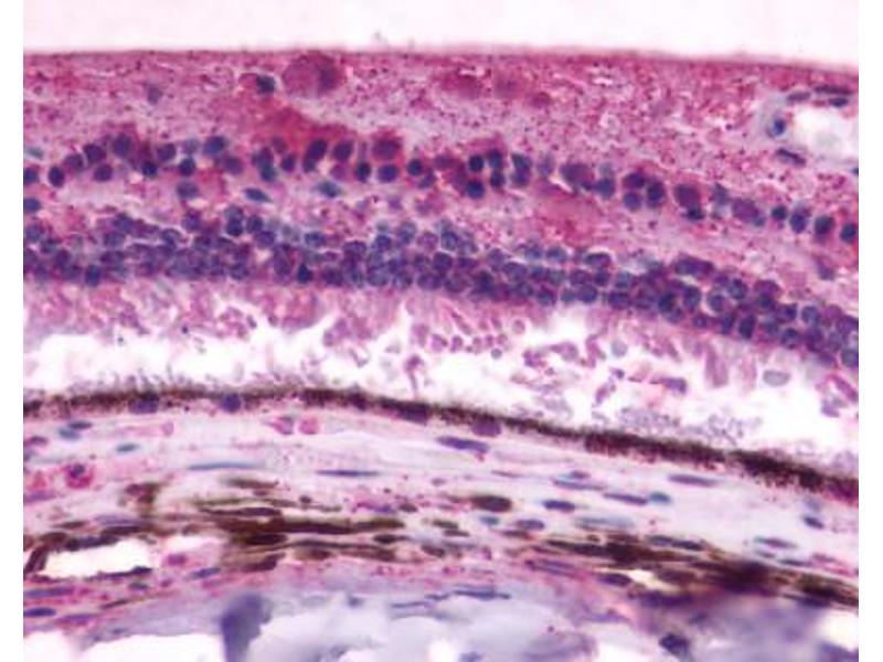 - Human RGR. BLAST analysis of the peptide immunogen showed no homology with other human proteins.