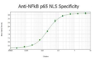 Immunogen: This antibody was purified from whole rabbit serum prepared by repeated immunizations with the NFkB p65 peptide corresponding to the NLS of the human protein conjugated to KLH using maleimide. A residue of cysteine was added to the amino terminal end to facilitate coupling.