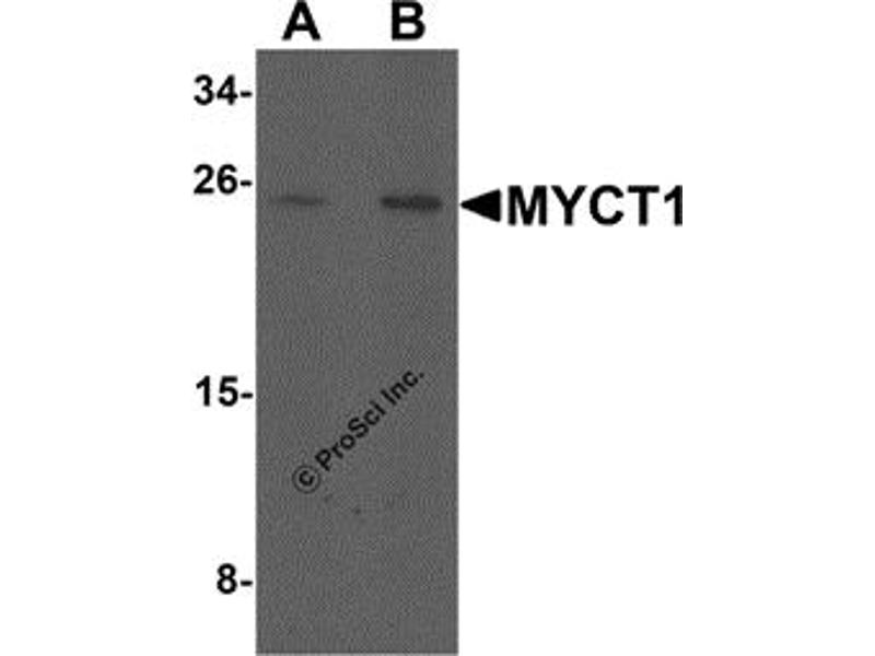 - MYCT1 antibody was raised against a 17 amino acid synthetic peptide near the carboxy terminus of human MYCT1.