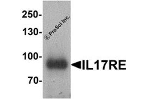 - IL-17RE antibody can be used for detection of IL-17RE by Western blot at 1 - 2 μg/mL.