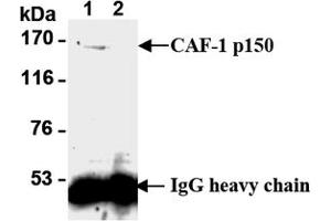 Chromatin assembly factor-1 (CAF-1) is a highly conserved member of the histone chaperone family that promotes chromatin assembly during DNA replication in eukaryotes. CAF-1 acts as a specialized assembly factor to target newly synthesized histones to replicating DNA. CAF-1 consists of a complex of three subunits of 150 kDa (p150), 60 kDa (p60), and 48 kDa (p48). The histone chaperone Asf1 (anti-silencing function 1) protein can interact directly with the p60 subunit of CAF-1, possibly linking CAF-1 activity to DNA repair. CAF-1 may also play a regulatory role in DNA damage processing and checkpoint control.Synonyms: CAF1A, CAF1P60, CHAF1B, Chromatin assembly factor 1 subunit B, Chromatin assembly factor I p60 subunit, M-phase phosphoprotein 7, MPHOSPH7, MPP7