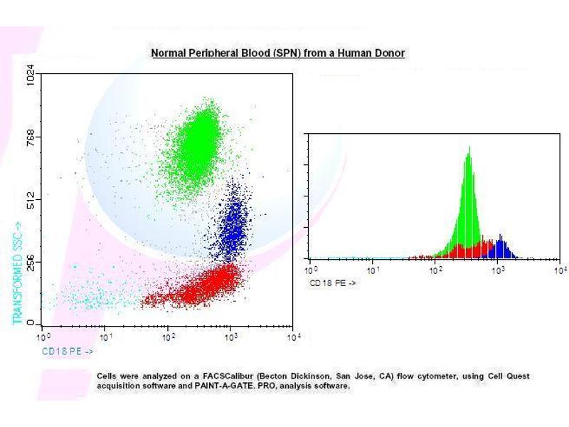 - Monoclonal Mouse Anti-Human CD18 PE, is recommended for use in flow cytometry for identification of LFA-1 beta is a leukocyte adhesion receptor to (ICAM's) intracellular adhesion meleculas.