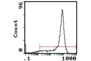 - FLOW CYTOMETRY ANALYSIS: Method: 1. Prepare a cell suspension in media A. For cell preparations, deplete the red blood cellpopulation with Lympholyte®-M cell separation medium. 2. Wash 2 times. 3. Resuspend the cells to a concentration of 2x10e7 cells/ml in media A. Add 50 µl of thissuspension to each tube (each tube will then contain 1 x 10e6 cells, representing 1 test). 4. To each tube, add 0. 1-0. 2 µg* of this Ab per 10e6 cells. 5. Vortex the tubes to ensure thorough mixing of antibody and cells. 6. Incubate the tubes for 30 minutes at 4°C. 7. Wash 2 times at 4°C. 8. Add 100 µl of secondary antibody (Streptavidin-FITC) at a 1: 500 dilution. 9. Incubate tubes at 4°C for 30 - 60 minutes (It is recommended that tubes are protectedfrom light since most fluorochromes are light sensitive). 10. Wash 2 times at 4°C. 11. Resuspend the cell pellet in 50 µl ice cold media B. 12. Transfer to suitable tubes for flow cytometric analysis containing 15 µl of propidiumiodide at 0. 5 mg/ml in PBS. The stains dead cells by intercalating in DNA. Media: A. Phosphate buffered saline (pH 7. 2) + 5% normal serum of host species + sodium azide(100 µl of 2M sodium azide in 100 mls). B. Phosphate buffered saline (pH 7. 2) + 0. 5% Bovine serum albumin + sodium azide (100µl of 2M sodium azide in 100 mls). Results - Tissue DistributionMouse Strain: BALB/cCell Concentration: 1x10e6 cells per testsAntibody Concentration Used: 0. 2 µg/10e6 cellsIsotypic Control: Biotin Rat IgG2bResults - Strain DistributionCell Concentration: 1x10e6 cells per testsAntibody Concentration Used: 0. 2 µg/10e6 cellsStrains Tested: BALB/c, CBA/J, C3H/He,C57BL/6Positive: BALB/c, CBA/J, C3H/He,C57BL/6Negative: none