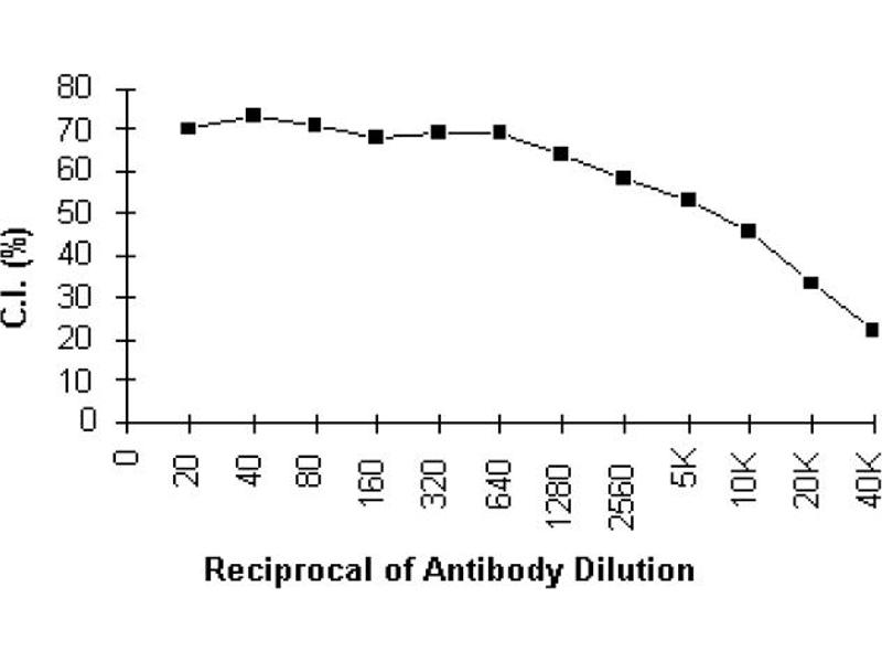 - RECOMMENDED METHOD FOR DEPLETING A CELL POPULATIONOF H-2Dd BEARING LYMPHOCYTES: 1. Prepare a cell suspension from the appropriate tissue in Cytotoxicity Medium1 orequivalent. Remove red cells and dead cells (where necessary) by purification of viablelymphocytes on Lympholyte®-M density cell separation medium. After washing, adjust thecell concentration to 1x10e7 cells per ml in Cytotoxicity Medium. 2 Add the antibody to afinal concentration of 1: 80 and mix. Alternatively, pellet the cells and resuspend inantibody diluted 1: 80 in Cytotoxicity Medium. 3. Incubate for 60 minutes at 4°C. 4. Centrifuge to pellet the cells and discard the supernatant. 5. Resuspend to the original volume in Low-Tox®-M Rabbit Complement, diluted to theappropriate concentration in Cytotoxicity Medium. (Recommended concentration includedwith each batch of Low-Tox®-M Rabbit Complement. )6. Incubate for 60 minutes at 37°C. 7. Monitor for percent cytotoxicity at this stage, before further processing. For this purposeremove a small sample from each tube, dilute 1: 10 with medium, and add 1/10 volume of1% Trypan Blue. After 3-5 minutes, score live versus dead cells in a haemacytometer. 8. For functional studies, remove the dead cells from the treated groups before furtherprocessing, particularly if the treated cells are to be cultured. This can be done by layeringthe cell suspension separation medium and centrifuging at room temperature as per theinstructions provided. Live cells will form a layer at the interface, while the dead cellspellet. The interface can then be collected and washed in Cytotoxicity Medium before beingresuspended in the appropriate medium for further processing. Alternately, the cells canbe washed and resuspended in the appropriate medium for further processingimmediately after Step 6. , provided that the dead cells will not interfere with subsequentassays. RECOMMENDED METHOD FOR DETERMINING PERCENT OF H-2Dd BEARING CELLS IN A POPULATION: 1. Prepare a cell suspension from the appropriate tissue in Cytotoxicity Medium1 orequivalent. Remove red cells and dead cells (where necessary) by purification of viablelymphocytes on Lympholyte®-M density cell separation medium. After washing, adjust thecell concentration to 1x10e6 cells per ml in Cytotoxicity Medium. 2. Add the antibody to a final concentration of 1: 80 and mix. 3. Incubate for 60 minutes at 4°C. 4. Centrifuge to pellet the cells and discard the supernatant. 5. Resuspend to the original volume in Low-Tox®-M Rabbit Complement3 diluted to theappropriate concentration in Cytotoxicity Medium. (Recommended concentration includedwith each batch of Low-Tox®-M Rabbit Complement. 6. Incubate for 60 minutes at 37°C. 7. Place on ice. 8. Add Trypan Blue, 10% by volume of 1% Trypan Blue (w/v) added 3-5 minutes beforescoring works well. Score live versus dead cells in a haemacytometer. Cytotoxic Index (C. I. )can be calculated as shown in figure 1. NOTES: 1. Cytotoxicity Medium is RPMI-1640 with 25mM Hepes buffer and 0. 3% bovine serumalbumin (BSA). BSA is substituted for the conventionally used fetal calf serum (FCS)because we have found that many batches of FCS contain complement dependentcytotoxins to mouse lymphocytes, thus increasing the background killing in the presenceof complement. We recommend that cells not be exposed to FCS prior to or duringexposure to antibody and complement. Some batches of BSA also contain complement