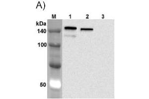 - Recognizes human Jagged-1. Detects a band of ~180 kDa by Western blot.