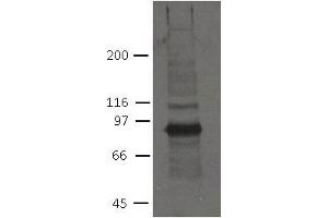 - Optimal antibody dilution should be determined by titration, however as a guideline start try, WB: 1/100. Predicted molecular weight: 97 kDa