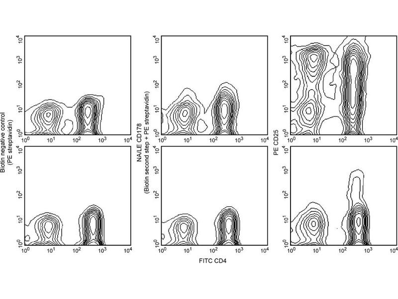 - We have found that enriched splenic T cells are induced to express Fas Ligand by 6 - 8-hour culture with plate-bound anti-alphabeta TCR mAb R73 (Cat. No. 554910) and anti-rat CD28 mAb JJ316 (Cat. No. 554992). Because Fas Ligand is expressed at low density on activated cells, we recommend the use of a biotinylated second-step antibody, such as polyclonal goat anti-hamster IgG, with a bright third-step reagent, such as Streptavidin-PE (Cat. No. 554061). Other reported applications include blocking of the cytotoxic activities of mFasL-transfected L5178Y T lymphoma, rFasL-transfected COS cells, and rFasL-transfected L5178Y cells.