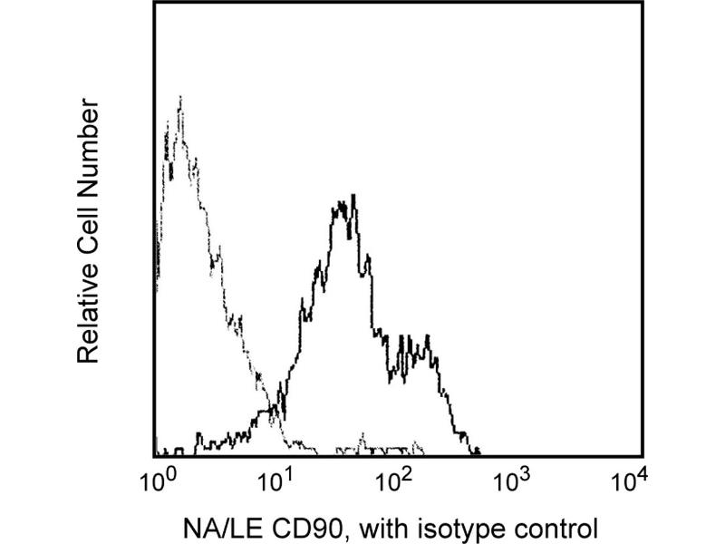 The 5E10 monoclonal antibody specifically binds to human CD90. CD90 is a 25-35 kDa molecule expressed on 1-4% of human fetal liver cells, cord blood cells, and bone marrow cells. Anti-CD90 reacts with a subset of immature, CD34+ cells and a distinct subset of mature CD34- cells that are CD3+CD4+. The CD90+CD34+ population is highly enriched for cells capable of long-term culture. Anti-CD90 is useful for enriching high proliferative potential colony-forming cells (HIPP-CFC) which are primative progenitor cells.