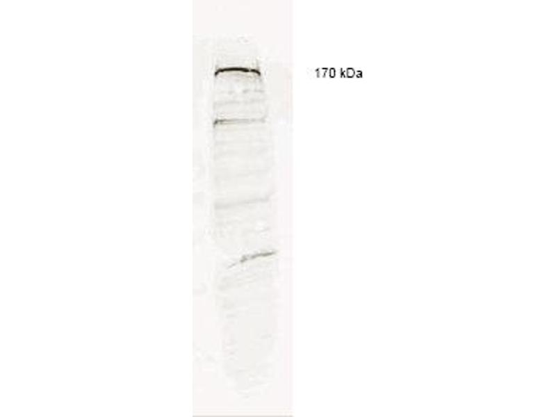 This affinity purified antibody has been tested for use in ELISA (1: 10,000-1: 50,000) andWestern blotting (1: 1,000-1: 2,500). Western blotting shows reactivity specific for human ESET detecting a band atapproximately 170 kDa. Specific band detection by Western blot is blocked by peptidecompetition by pre-incubating the antibody with the immunizing peptide prior to reactionwith the membrane. Reactivity in other immunoassays is unknown. Other applications not tested. Optimal dilutions are dependent on conditions and should be determined by the user.