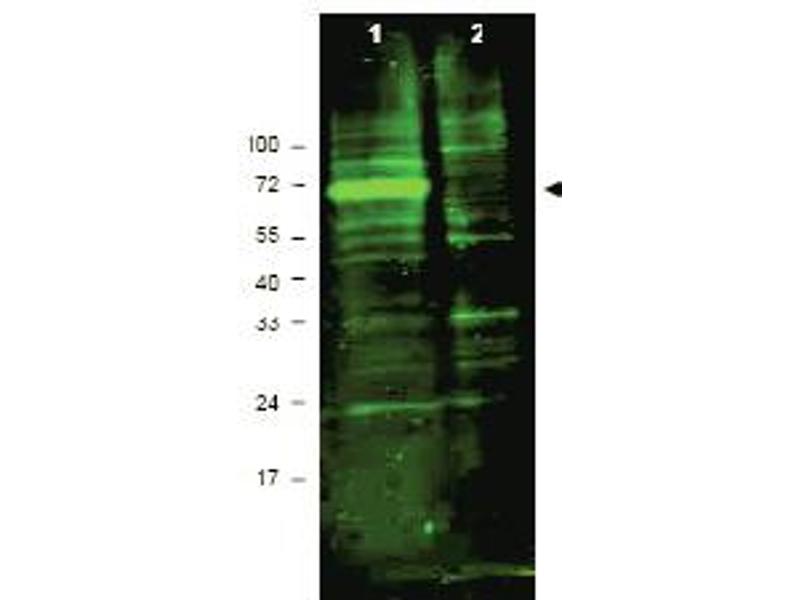 ELISA (1/14,000-1/80,000). Westen blot (1/1,500-1/8,000), Expect a band approximately 72 kDa in size correspondingto Hif3 α protein by western blotting in the appropriate cell lysate or extract.