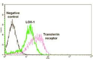 LOX-1 is a 40-50 kDa class E scavenger receptor, expressed by endothelial cells, macrophages, activated platelets and smooth muscle cells. LOX-1 binds to a wide range of ligands, including oxidized low-density lipoprotein (oxLDL), hypochlorite modified high-density lipoprotein (HDL), aged/apoptotic cells, activated platelets and bacteria, reflecting its versatile physiological functions. Expression of the LOX-1 gene is upregulated by oxLDL and the binding of LOX-1 to oxLDL results in the activation of NF-kappaB. Furthermore, LOX-1 antibodies have been shown to suppress the oxidized HDL (oxHDL) activation of NF-KappaB in endothelial cells, suggesting that this activation may be due to the binding of oxHDL to LOX-1. Angiotensin II and the inflammatory cytokine Tumour Necrosis Factor alpha (TNFalpha) also invoke an increase in LOX-1 gene expression and studies have focused on its role in endothelial dysfunction (1,4) and inflammatory diseases such as atherosclerosis (1) and rheumatoid arthritis, as well as its affect on CD40/CD40L signaling in both atherosclerosis and human coronary artery endothelial cells (HCAECs).Synonyms: C-type lectin domain family 8 member A, CLEC8A, LOX-1, Lectin-like oxidized LDL receptor 1, Lectin-type oxidized LDL receptor 1, Ox-LDL receptor 1, Ox-LDL receptor 1 soluble form, Oxidized low-density lipoprotein receptor 1, sLOX-1, sLOX1