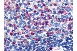 Immunohistochemistry with formalin fixed paraffin embedded tissues: 11 μg/mL. Antigen retrieval: Steam slides in 0.01 M sodium citrate buffer, pH 6.0, at 99-100 °C for 20 min. Remove from heat and let stand at room temperature in buffer for 20 min. Rinse in 1x TBS with Tween (TBST) for 1 min. at room temperature.