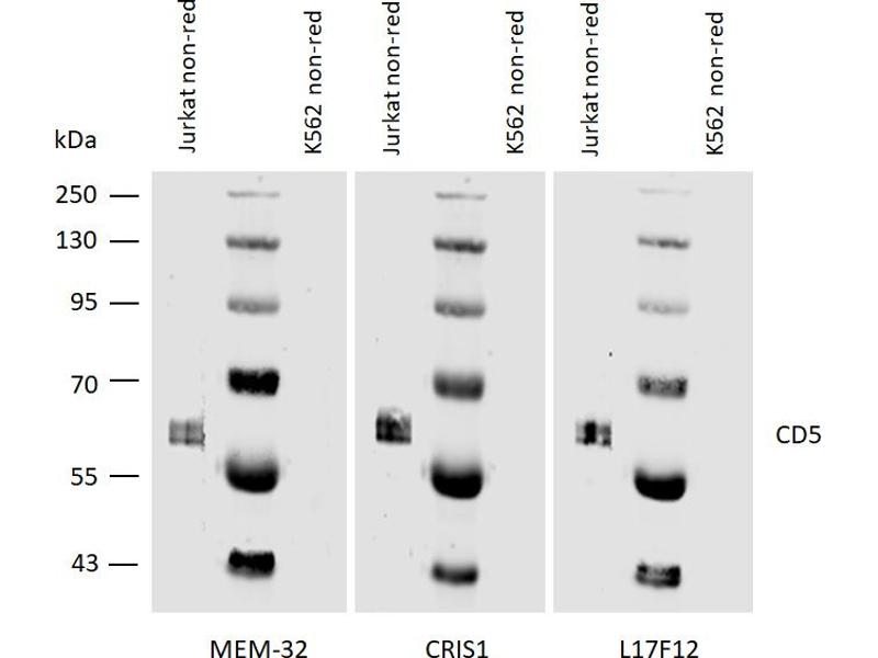 - The mouse monoclonal antibody CRIS1 reacts with an extracellular epitope of CD5, a 67 kDa single-chain transmembrane glycoprotein expressed on mature T lymphocytes, most of thymocytes and B lymphocytes subset (B-1a lymphocytes).