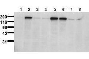 - Positive controlFormat: Lyophilized cell lysate from HepG2 cells. Serum starved cells were treated for 15min with pervanadate. Reconstitute by addition of 200 µl H20. After complete solubilization add 200 µl 2xSDS-PAGE sample buffer, mix and incubate at 90 °C for 5 min. Aliquote and store frozen. Avoid repeated freeze/thaw cycles. Application: The positive control cell lysate is recommended for immunoblot applications. 20 µl of positive control cell lysate correspond to ca. 80. 000 cells. Use 20 µl / lane (minigel) for HRPO/ECL detection of the target proteins. Please note: The lyophilized cell lysates contain SDS and are not recommended forapplications with native proteins such as immunoprecipitation.