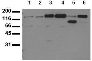 - This antibody specifically recognizes erbB4 at 180 kDa.