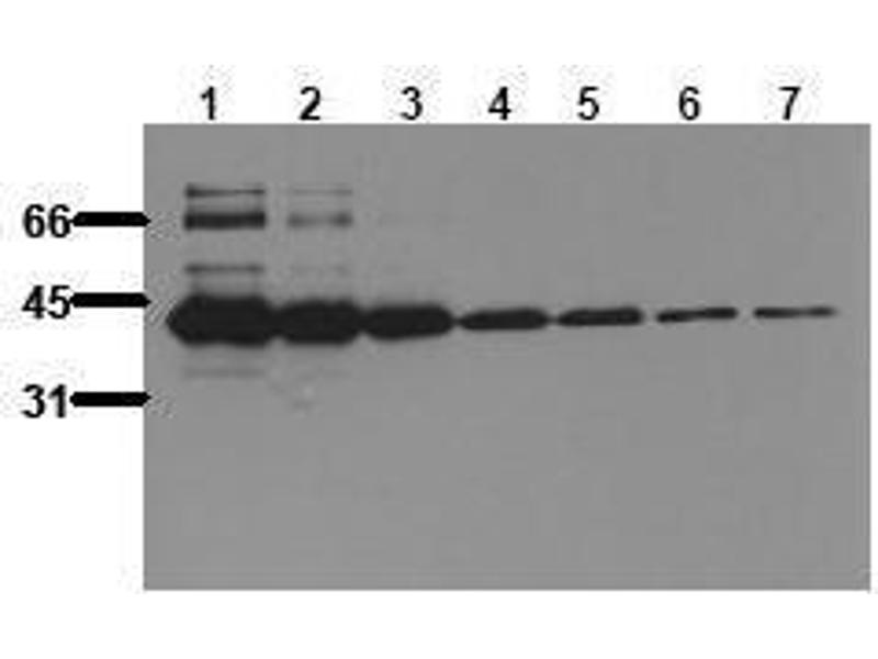 Western blot: 0.5 μg/mL for HRPO/ECL detection. Recommended blocking buffer: Casein/Tween 20 based blocking and blot incubationbuffer. ELISA: 0.05 μg/mL.
