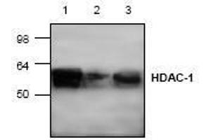 - The antibody detects the 62 kDa histone deacetylase 1. It does not cross-react with other HDAC proteins including HDAC2, 3, 4, 5, 6, 7, and 8.