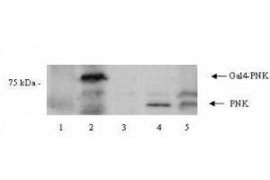 Immunogen: This affinity purified antibody was prepared from whole rabbit serum produced by repeated immunizations with a synthetic peptide corresponding to an internal region of human PNK protein.