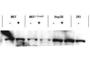 Application Note: This affinity purified antibody has been tested for use in ELISA, immunohistochemistry and by western blot. Specific conditions for reactivity should be optimized by the end user. Expect a band approximately 48 kDa in size corresponding to Smad3 protein by western blotting in the appropriate stimulated tissue or cell lysate or extract. This reagent reacts equally to phosphorylated and non-phosphorylated Smad3 by ELISA and western blotting.