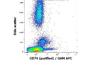 The antibody LN2 recognizes an extracellular epitope of CD74 (the MHC II-associated invariant chain, Ii), a type II transmembrane protein expressed in antigen-presenting cells, as well as e.g. on activated neoplastic cells in T cell lymphomas, in lymph node germinal center, mantle zone B cells, histiocytes, interdigitating reticulum cells, Langerhans cells, thymic dendritic cells and peripheral blood B lymphocytes.