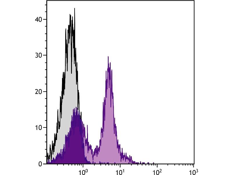 - Murine CD38, a type II transmembrane glycoprotein, is a bifunctional ectoenzyme capable of catabolizing nicotinamide adenine dinucleotide (NAD+) to cyclic ADP-ribose (cADPR), and then hydrolyzing cADPR to adenosine diphosphoribose (ADPR). It is expressed at high levels on the surface of peripheral B-lineage cells, and at low density on germinal center B cells from unimmunized mice. It has also been reported to be expressed at moderate levels on NK cells, a proportion of peripheral T cells, and a subpopulation of thymocytes which are mostly TCR+, CD4-, CD8-. Murine CD38 is also expressed by all Mac-1+ macrophages in the peritoneal cavities of unimmunized mice, but not by unstimulated bone-marrow-derived macrophages. Monoclonal antibodies to CD38 have been shown to induce B- and T-cell proliferation, protect B cells from apoptosis, and inhibit B lymphopoiesis.