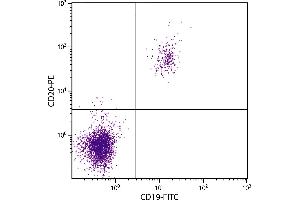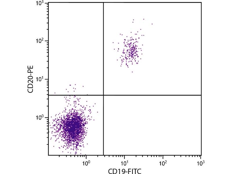 CD20 is a 33-37 kDa unglycosylated phosphoprotein. Although not a member of the tetraspanin superfamily of cell surface receptors, it crosses the cell membrane four times. It is expressed on all stages of B cell differentiation except plasma cells. The CD20 molecule is involved in regulation of B cell differentiation, presumably via its reported function as a Ca++ channel subunit.