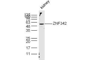 Background: Zinc-finger proteins contain DNA-binding domains and have a wide variety of functions, most of which encompass some form of transcriptional activation or repression. The majority of zinc-finger proteins contain a Kr_ppel-type DNA binding domain and a KRAB domain, which is thought to interact with KAP1, thereby recruiting histone modifying proteins. As a member of the Kr_ppel C2H2-type zinc-finger protein family, ZNF342 (zinc finger protein 342), also known as Zinc finger protein 296, is a 475 amino acid nuclear protein that contains six C2H2-type zinc fingers through which it is thought to be involved in DNA-binding and transcriptional regulation.